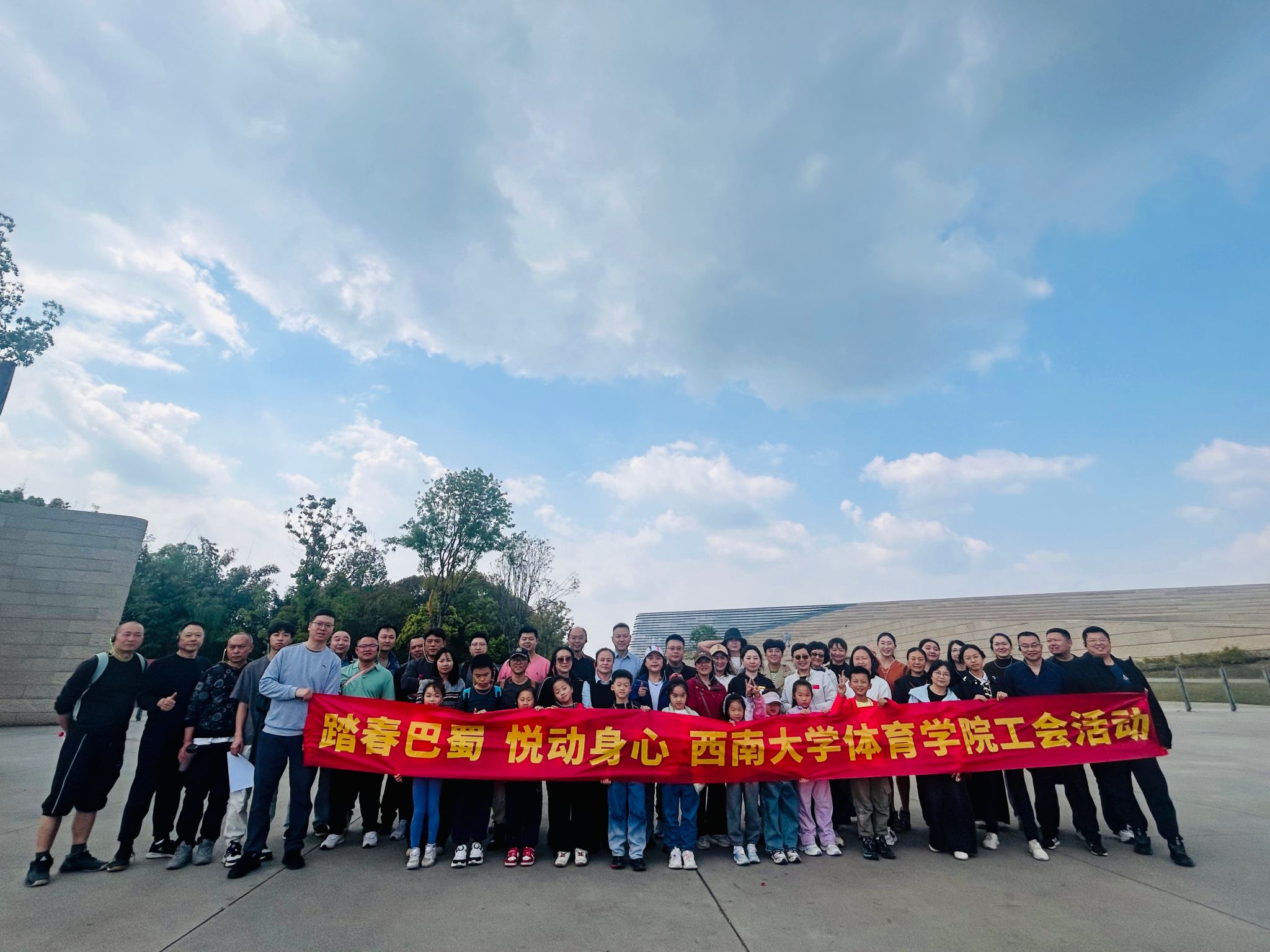 为丰富教职工业余文化生活,增进教职工之间的感情交流和团队凝聚力,感受和体验成渝双城经济圈建设成果,体育学院工会于2026年3月28日至29日组织30余名工会会员开展“踏春巴蜀 悦动身心”主题春游活动,让教职工走进自然与历史,放松身心,传递组织温暖。